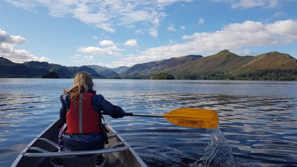 school pupil canoeing on a lake in Keswick